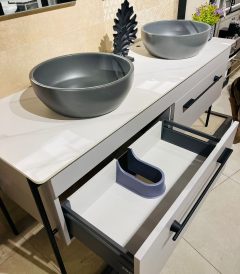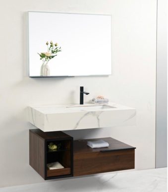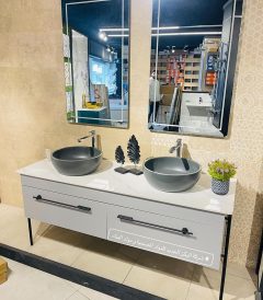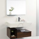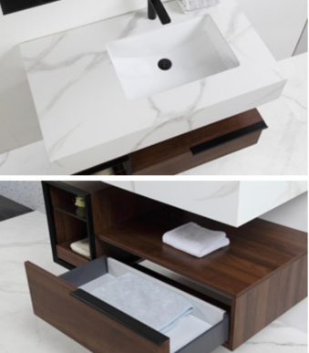 خزانة حمام مصنوعة من الخشب المضاد ومغطى بطبقة من البوليستر مع مرآيتين عاليتين الجودة